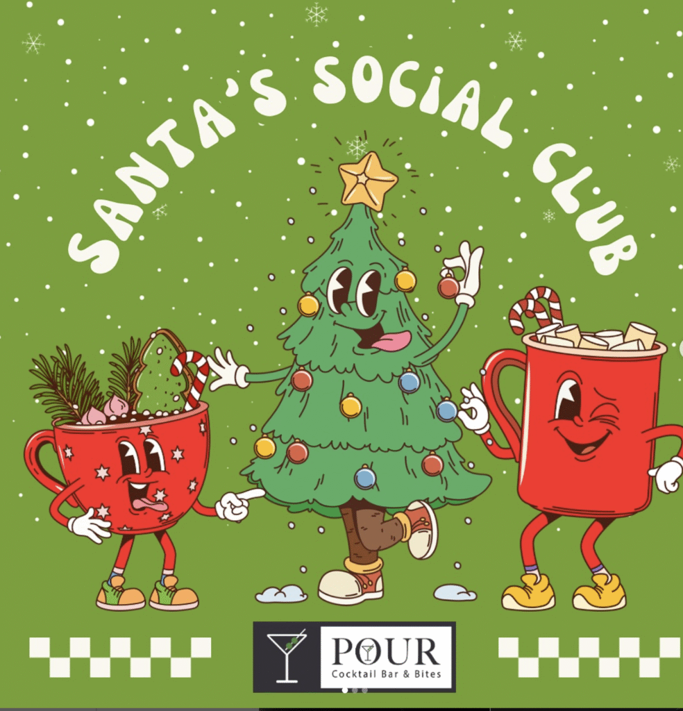 Welcome to Santa’s Social Club, where the holiday spirit comes alive! I mean look at their menu! Join Pour Cocktail Bar for merry moments, jolly drinks, and festive fun! They even have a Christmas Movie Flight featuring 3 tasty cocktails from your favorite Christmas movies! 21+ suggested