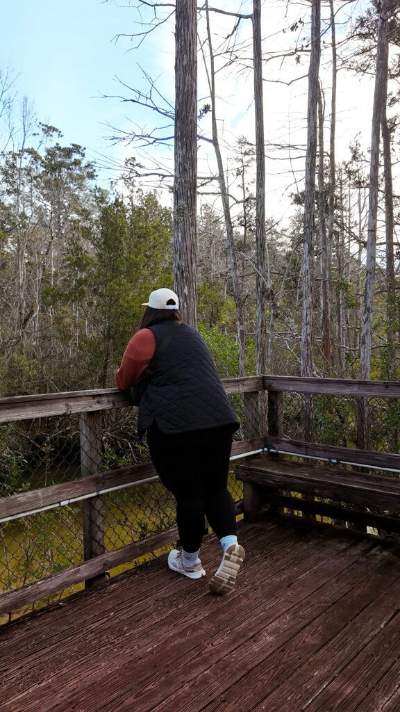 I’m not the biggest beach walker, but I do love a good boardwalk or paved trail and this one was SO awesome. This scenic boardwalk winds over clear spring-fed water surrounded by cypress trees. Since it was winter, it was peaceful and quiet for me and I was able to spot some wildlife along the trail. During warmer weather, you can swim and kayak these waters too with ease as they have little docking stations where you can easily enter in the water – it was so cool!