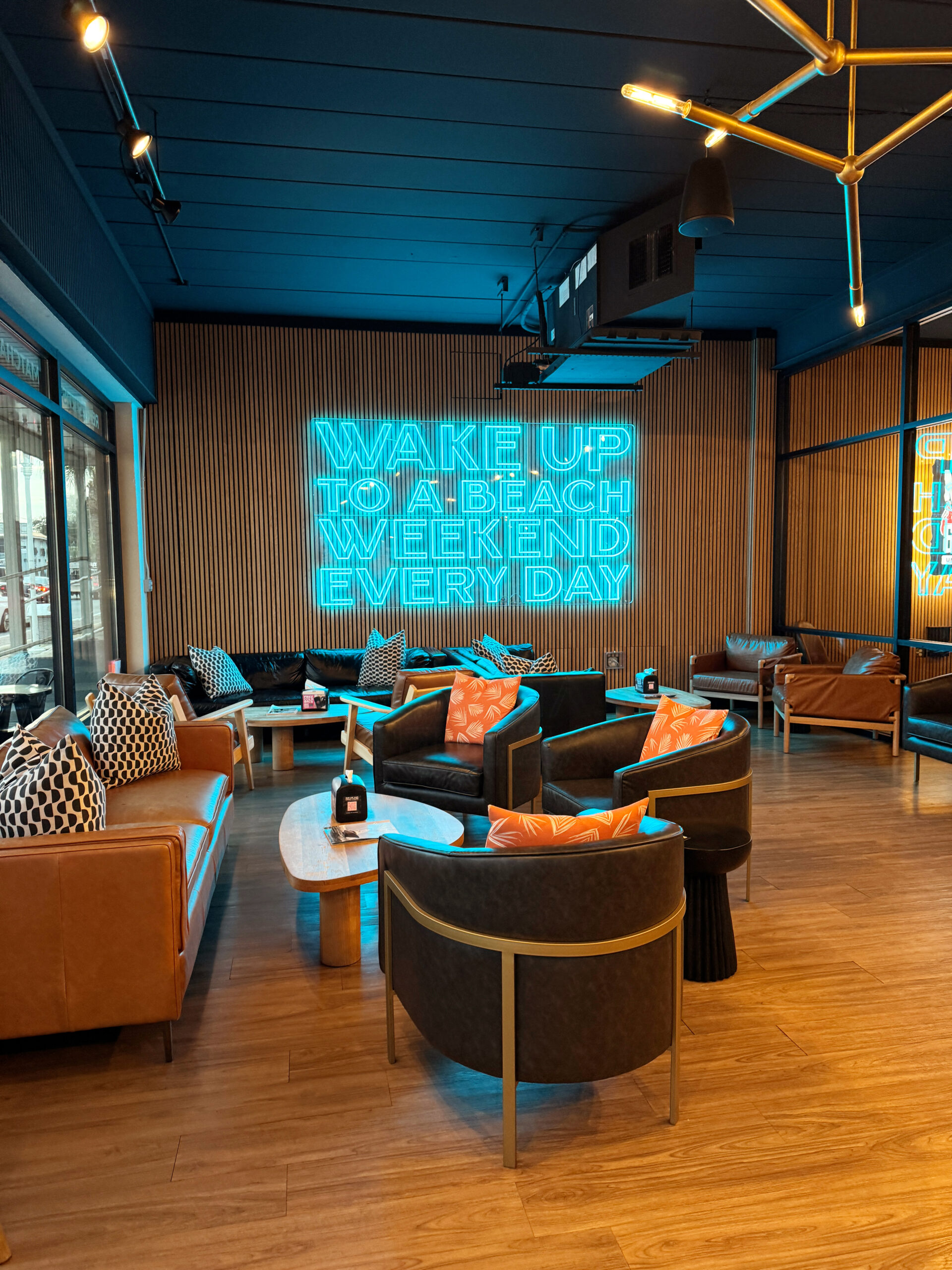 We grabbed coffee at Beach Weekend Coffee which has amazing seasonal drinks – definitely try one with a fun cold foam flavor too! They have a variety of breakfast treats as well. The vibe was fun and funky inside and you can tell it’s a local favorite hangout! From there, definitely wander up and down the street and pop into the stores like Fluid Surf Shop, DeFrance Indoor Flea Market (it’s GIGANTIC and so many good finds in there!), or the Buccaneer Gift Shop.
