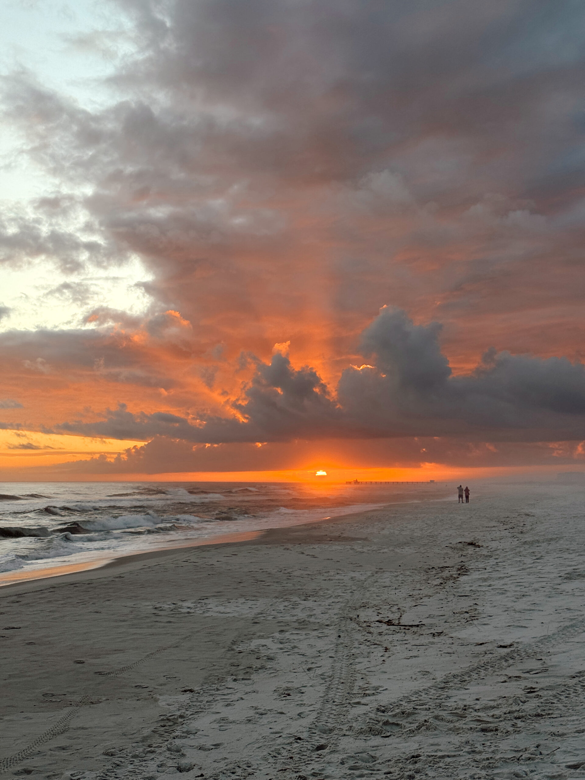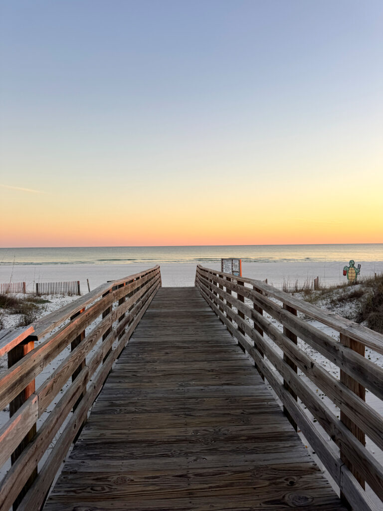 One of my favorite parts of our trip was simply showing up for sunrise and sunset each day. There are several options for different beach areas to park and enjoy the views so you really can’t go wrong. My favorite area to catch the sunset was from Gulf State Park Pier or sunrise from Cotton Bayou Public Beach access – both have large parking lots and easy boardwalks out to the sand! I’m not one for wanting to deal with finding parking in the morning, so the way I could pull in with ease at both of these locations makes those 5 am wake-up calls much easier 🙂
