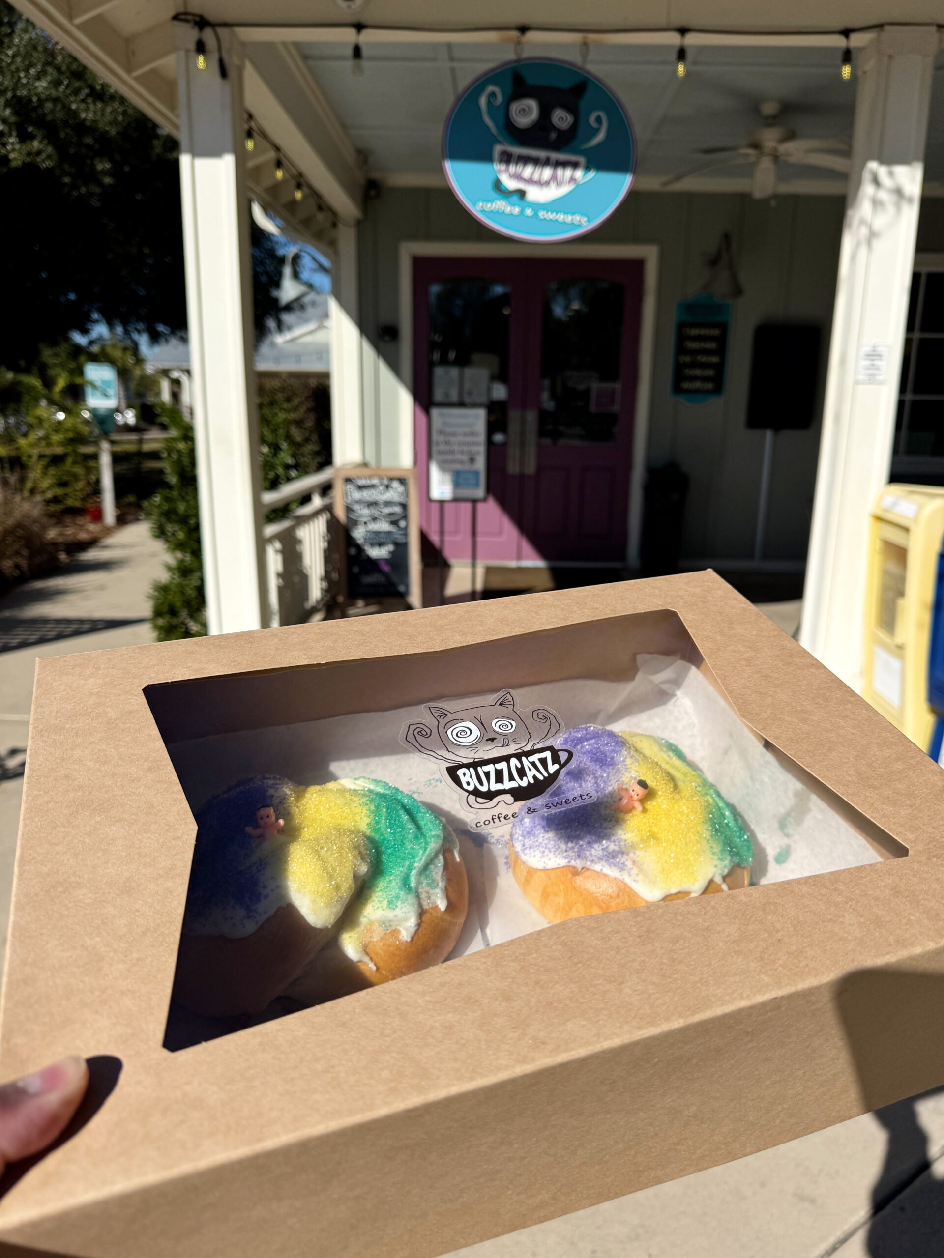 • BuzzCatz Coffee & SweetsSuch a cozy breakfast and coffee stop. Their homemade pastries were SO good and we even enjoyed their King Cake during Mardi Gras season!