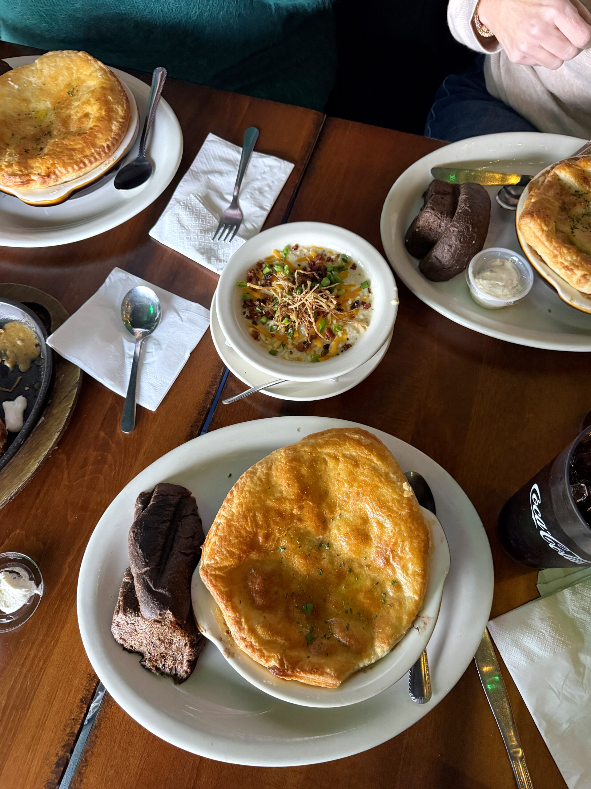 • The Galway Irish PubA fun change of pace with hearty Irish dishes and a laid-back pub vibe. Come hungry! I enjoyed the chicken pot pie which was so delicious and savory. They even have a live stream of Dublin playing in the restaurant which was so fun to see!