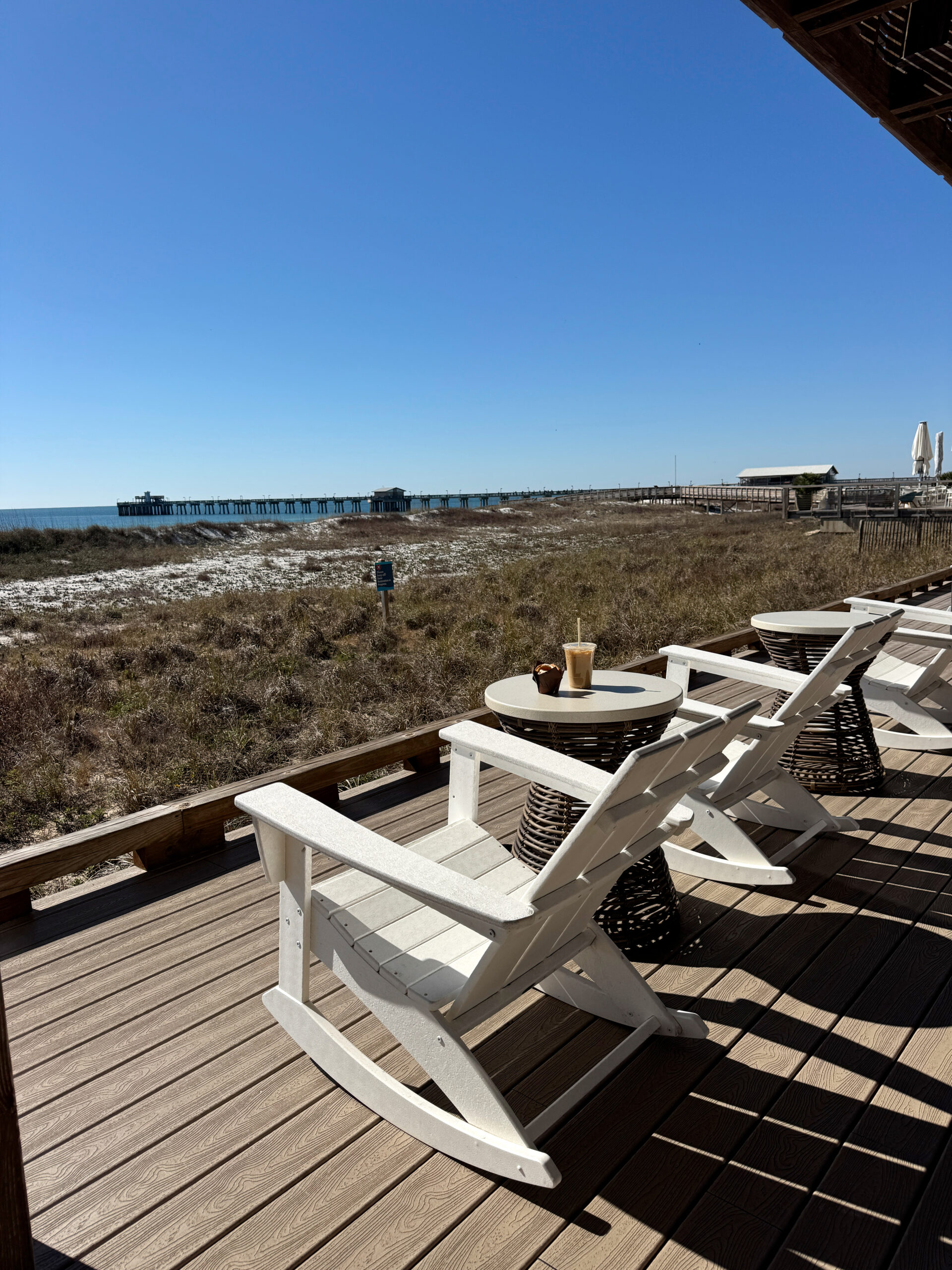 You can also take your bikes to the Lodge at Gulf State Park for some beautiful ocean views. They have a beautiful deck out back where you can grab a coffee at their little coffee shop and then sit and enjoy the waves and sunshine. Highly recommend doing that one morning!